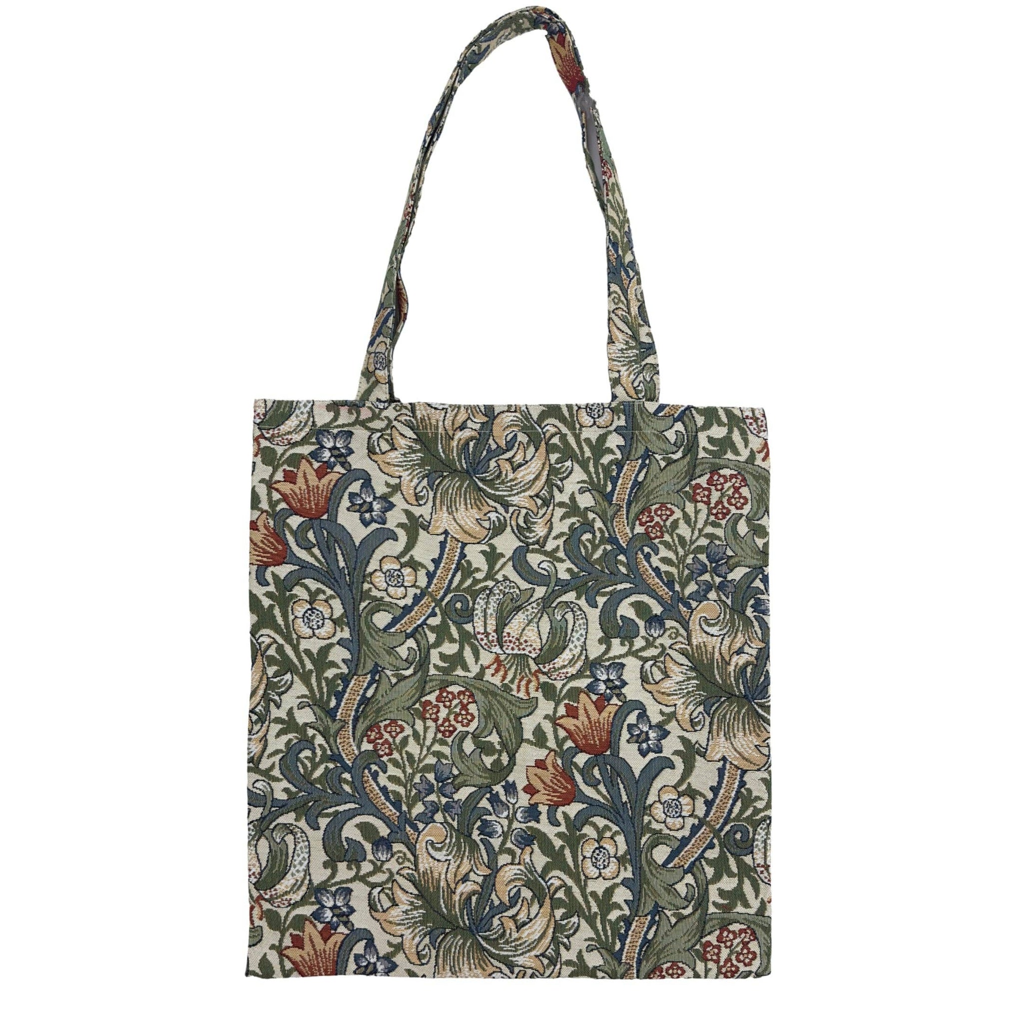 Inspired by the work of English textiles and stained glass designer J. H. Dearle. The striking seasonal fabric of entwined lily flowers, stems and tendrils creates a floral arrangement designed to blend well with sun-kissed pastel colour schemes.