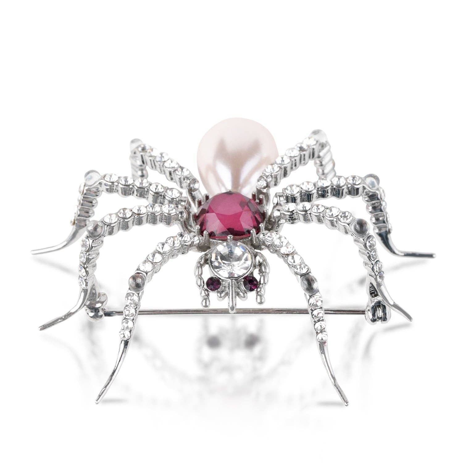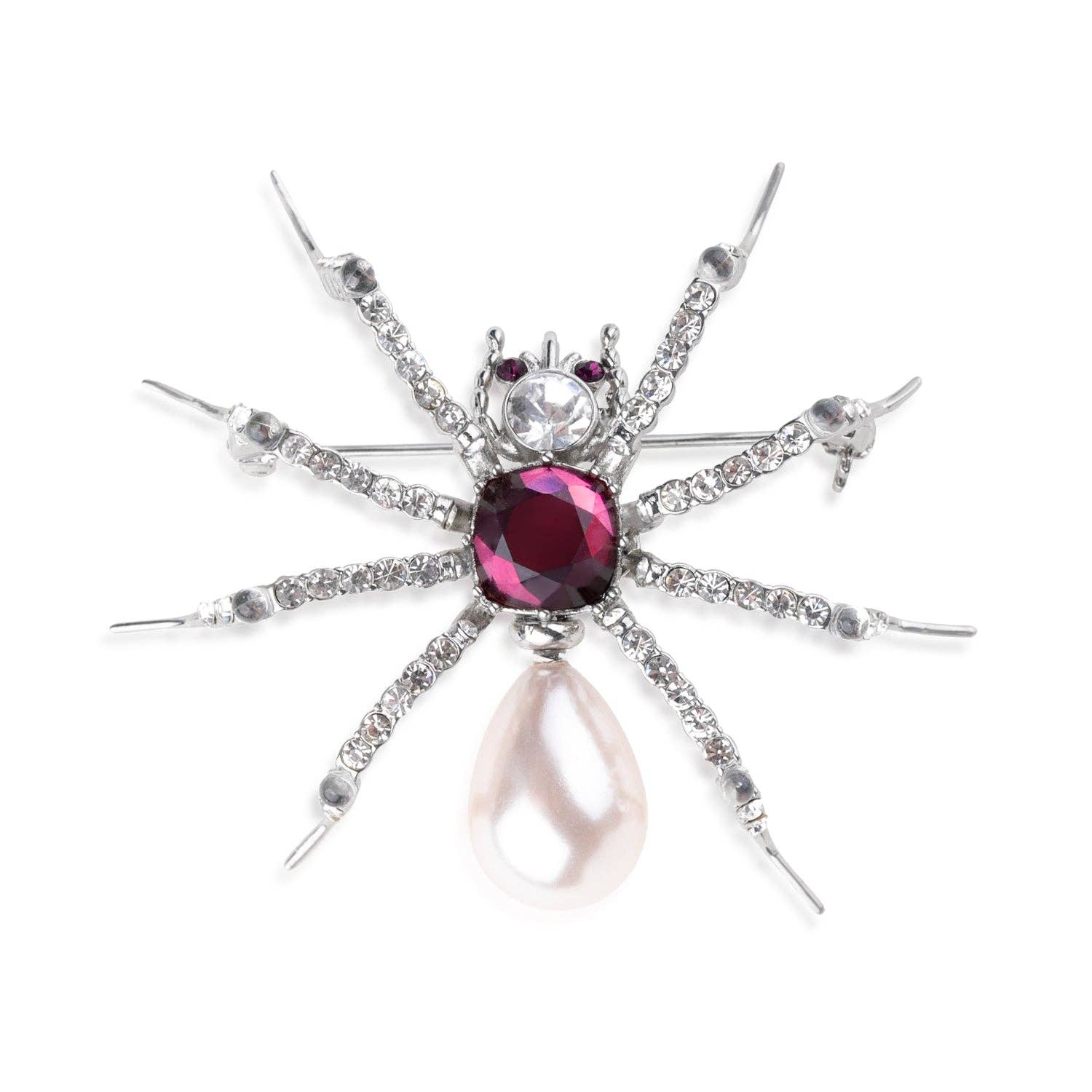Make a bold statement with this Pearl Spider Brooch, a stunning piece of jewellery that embodies fine craftsmanship by Bill Skinner. This exquisite brooch features an intricate spider design adorned with a lustrous pearl body and sparkling amethyst crystal accents, creating a captivating and unique accessory.