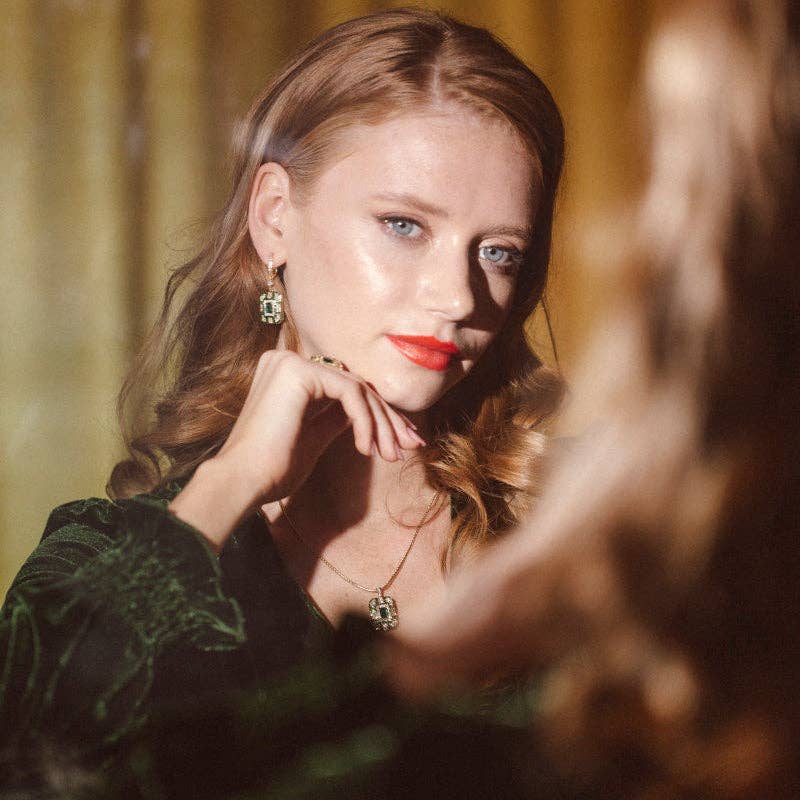 Emerald Art Deco Drop Earrings