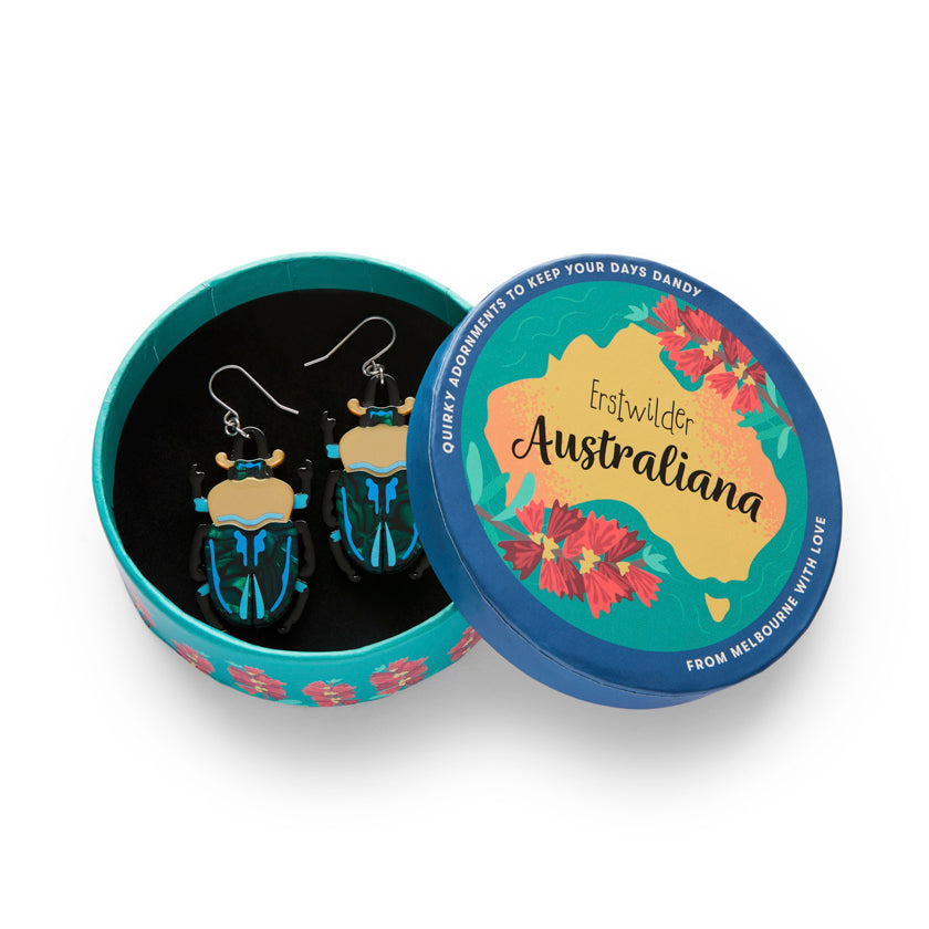Ruby the Rainbow Stag Beetle Earrings