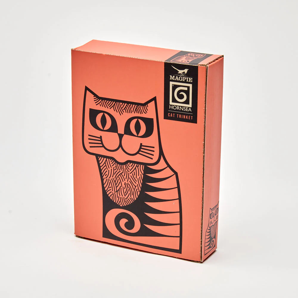 Hornsea Design Director, John Clappison, originally drew this fantastic cat for a range of ceramic cruet sets, produced in 1967. Magpie have redrawn this super cute animal from the original artwork archived in the Hornsea Museum and created a new ceramic mould to make a trinket dish, glazing it using authentic Hornsea colours of the period.