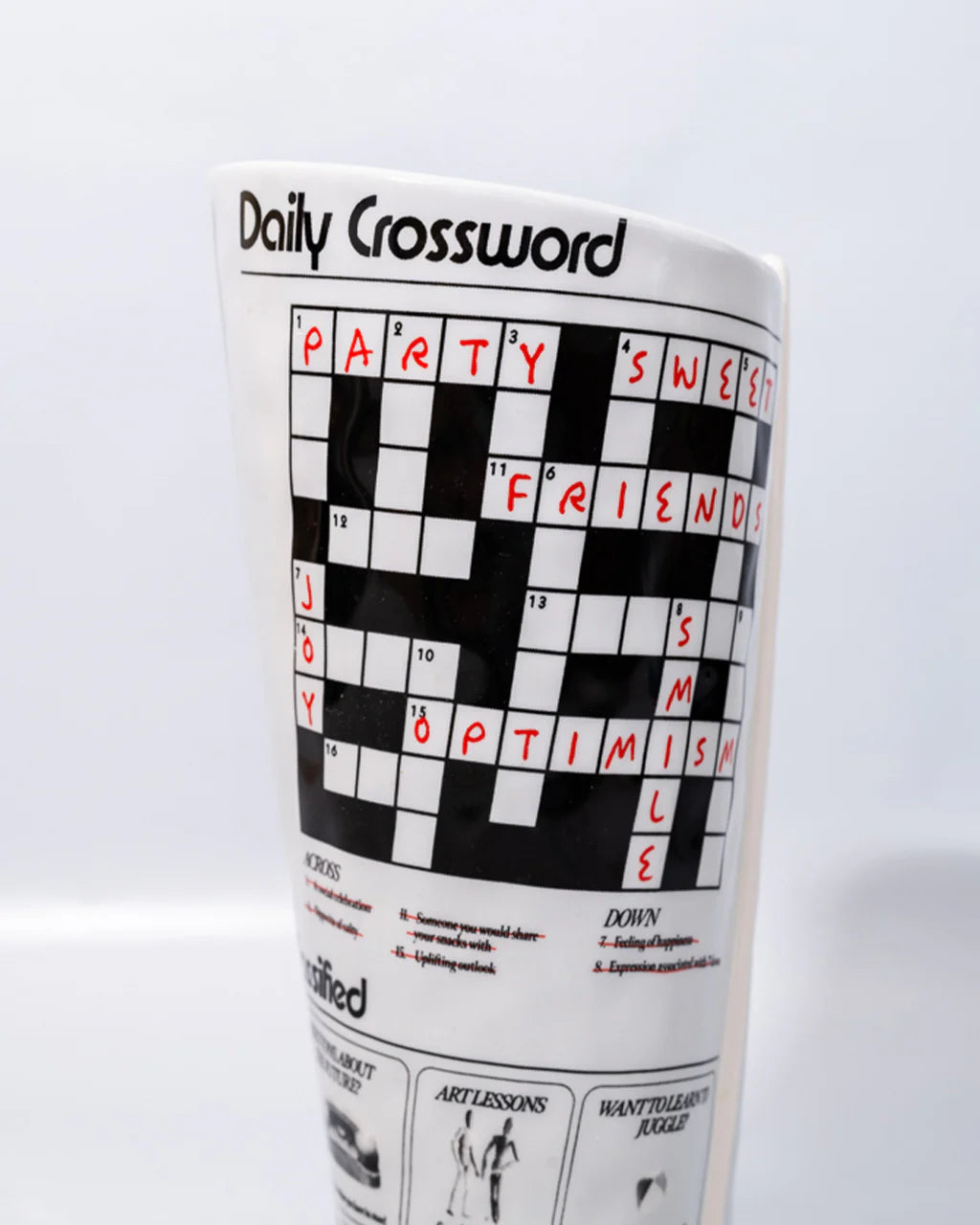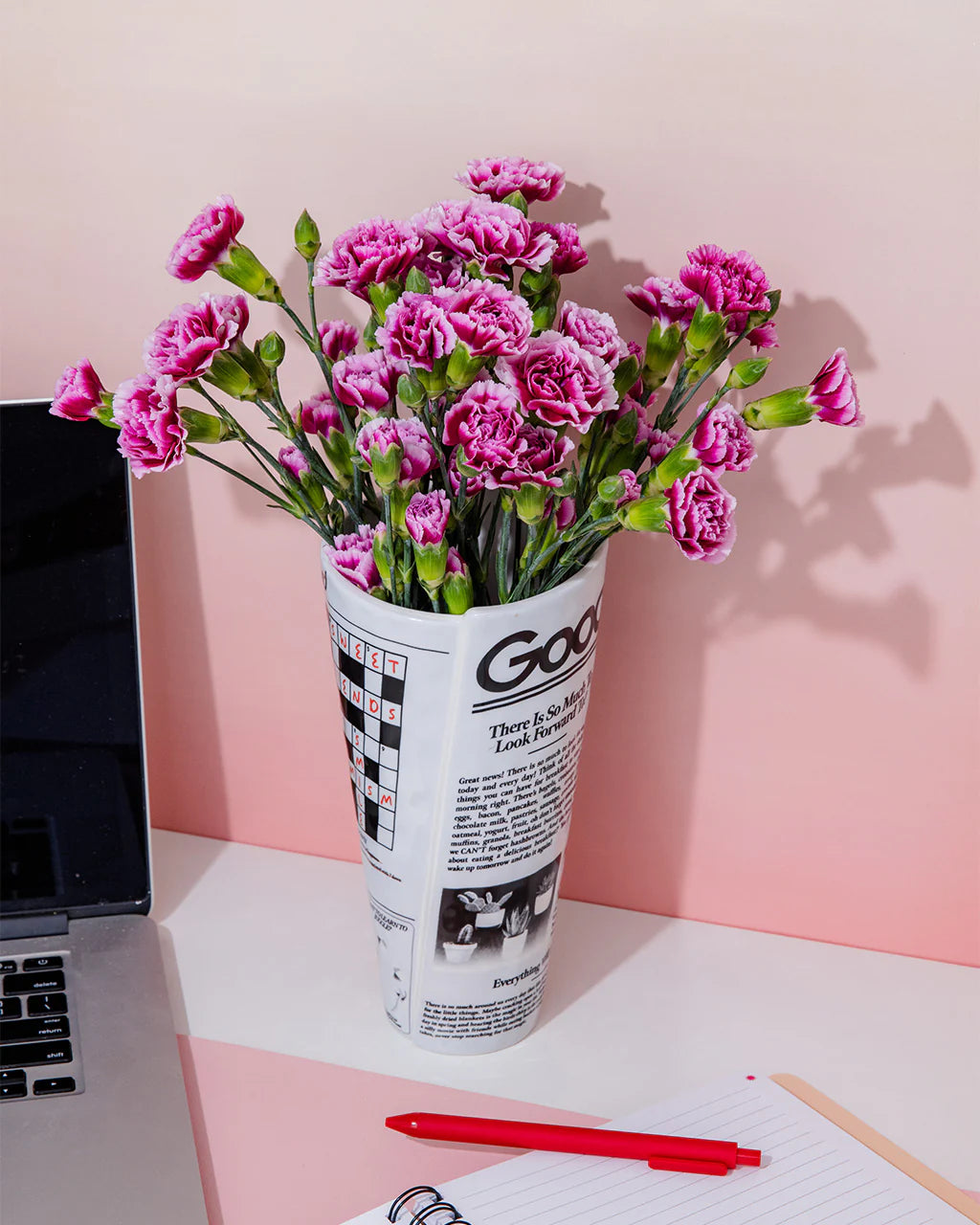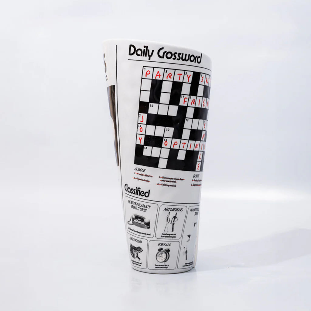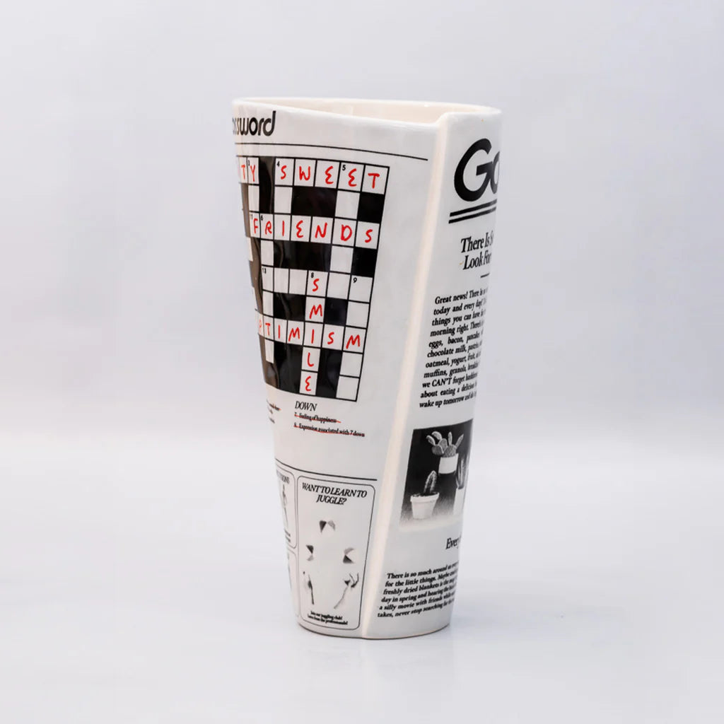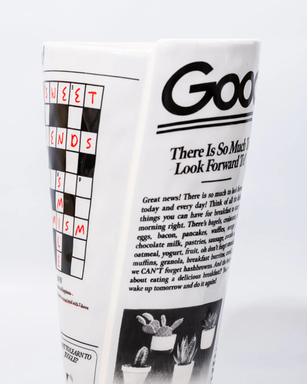 Extra! Extra! Read all about this vase: It’s ceramic and features a newspaper design!