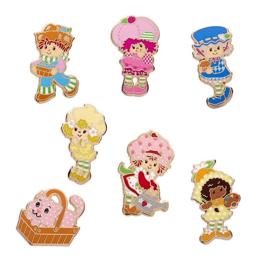 This pack contains each enamel pin in the Erstwilder x Strawberry Shortcake collection: