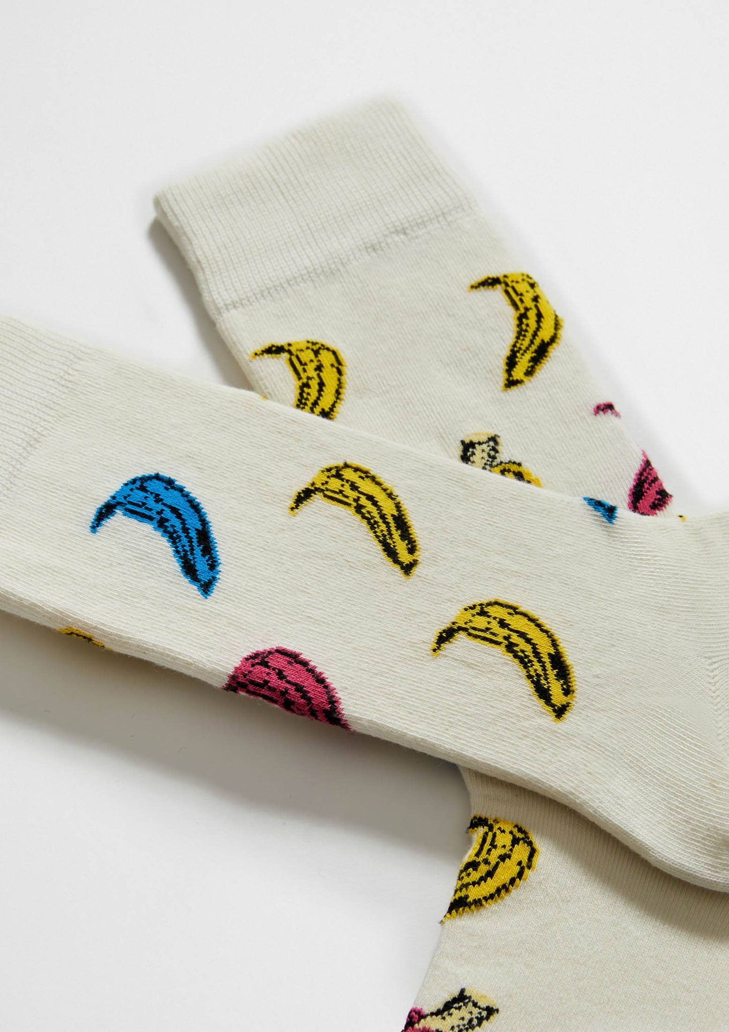 These mid-calf height socks with a pop art banana design are made from organic cotton. Their seamless construction provides the comfort your feet need.