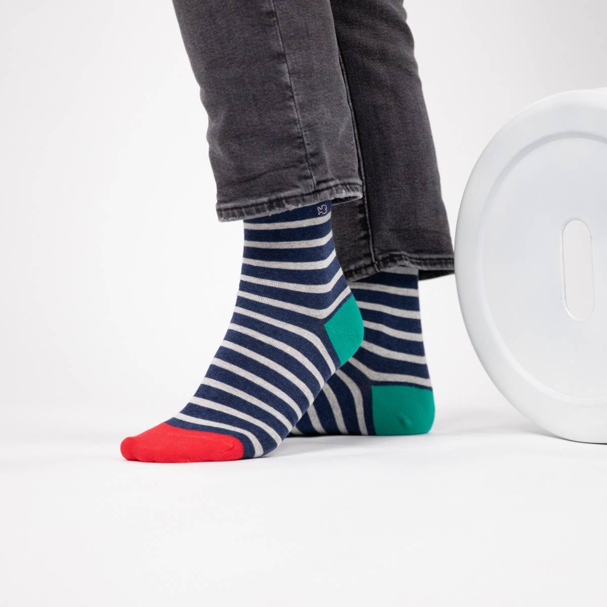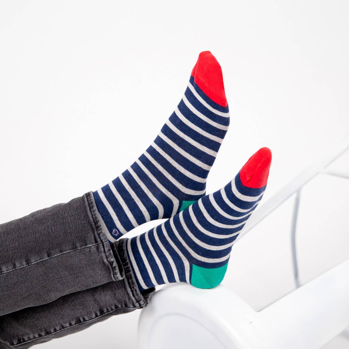 BILLYBELT Stripe Socks - Navy with White Stripe