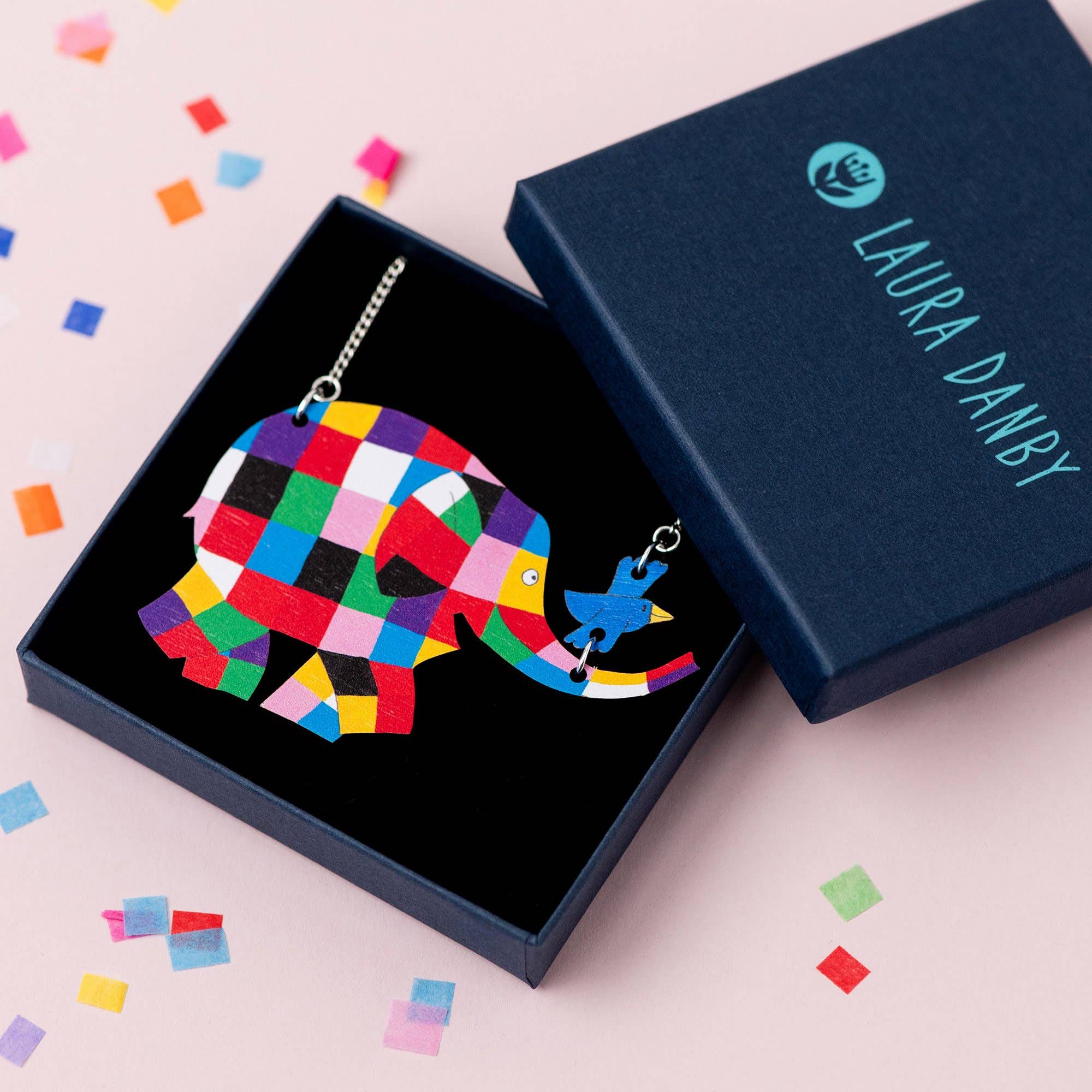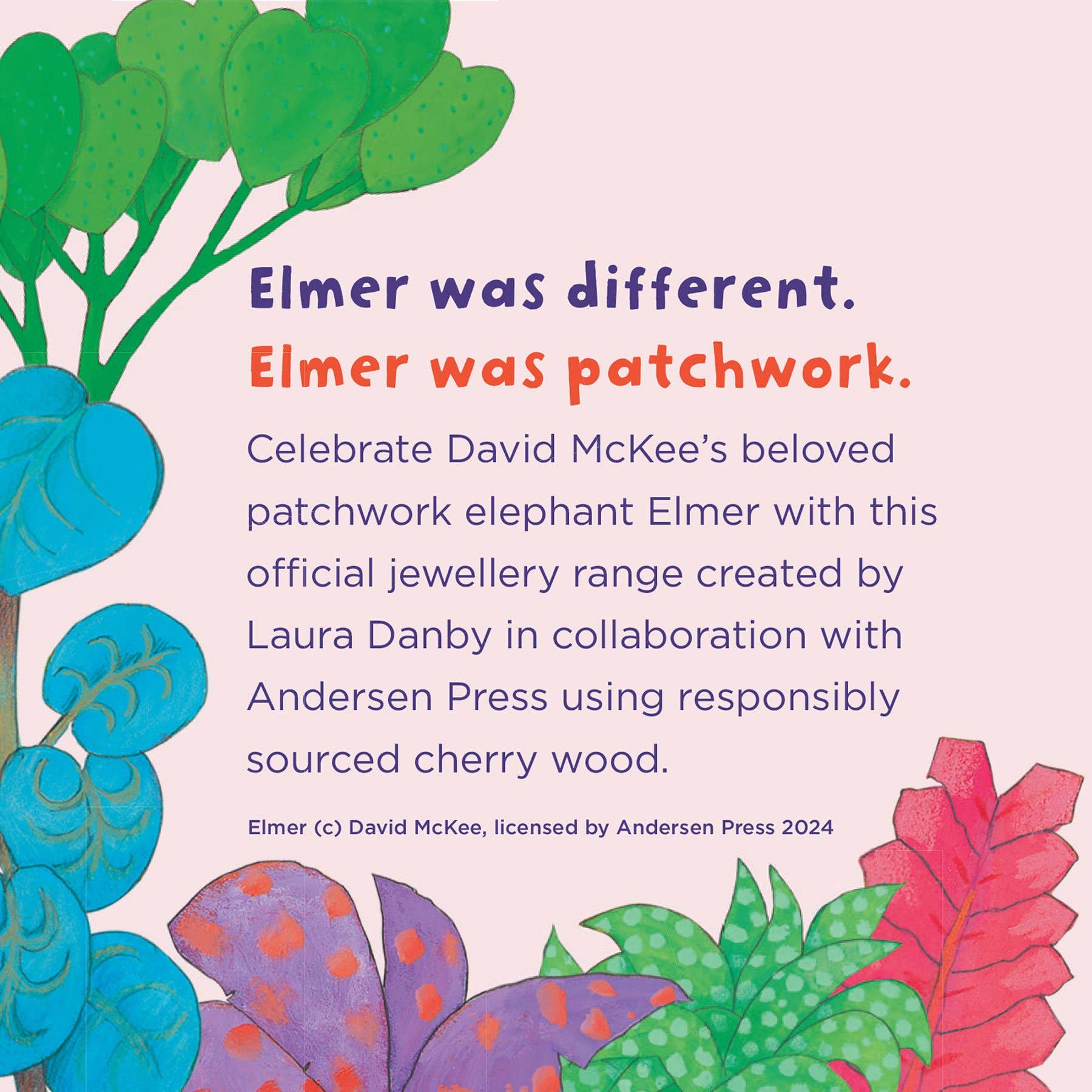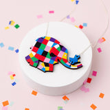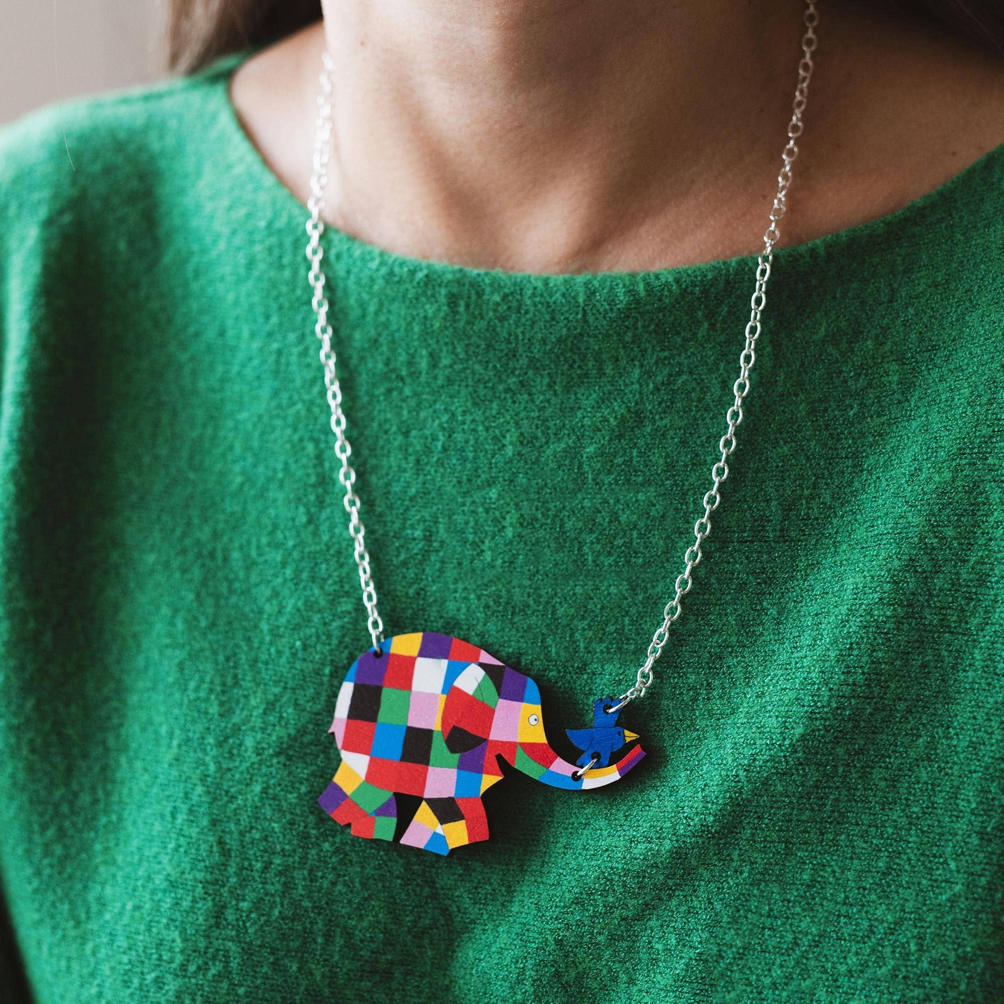 Celebrating the timeless charm of David McKee's beloved literary character, Elmer, the necklace design adds a burst of colour and joy to your outfit.