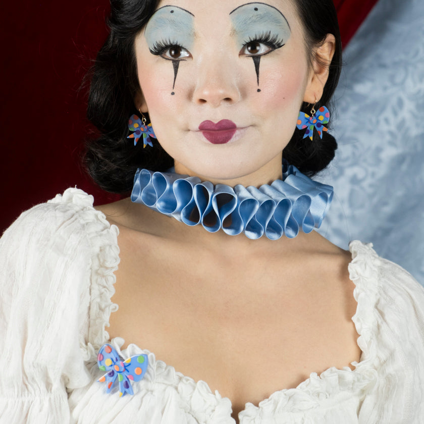 Polka Dot Bow Simplified Mini Brooch – Blue